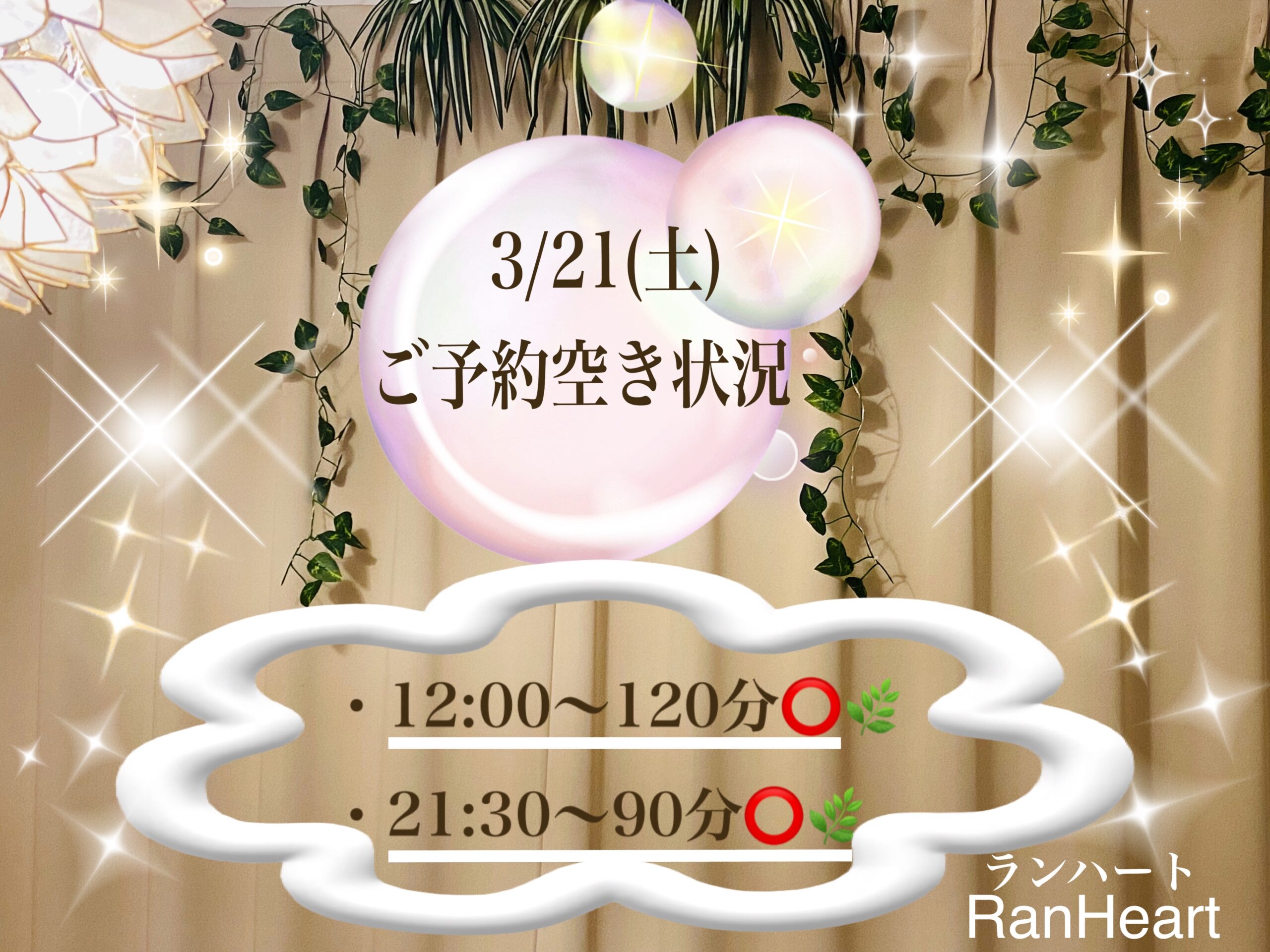 21日12:00~120分コース◎21:30~90分コース◎